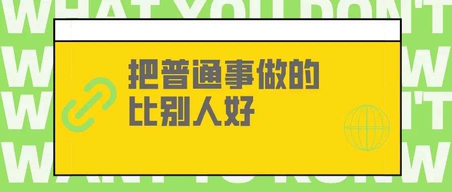 能把普通事做到高于預(yù)期,你才有更多機會去做有難度而有價值的工作。