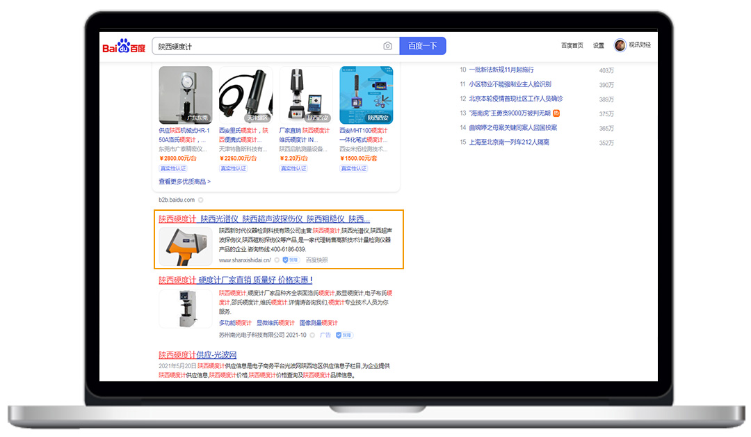 新時(shí)代關(guān)鍵詞:陜西硬度計(jì)、陜西光譜儀、陜西直讀硬度計(jì)、陜西石油硬度計(jì)、西安硬度計(jì)等,均在百度首頁(yè)展現(xiàn),準(zhǔn)確鎖定有需求的客戶。